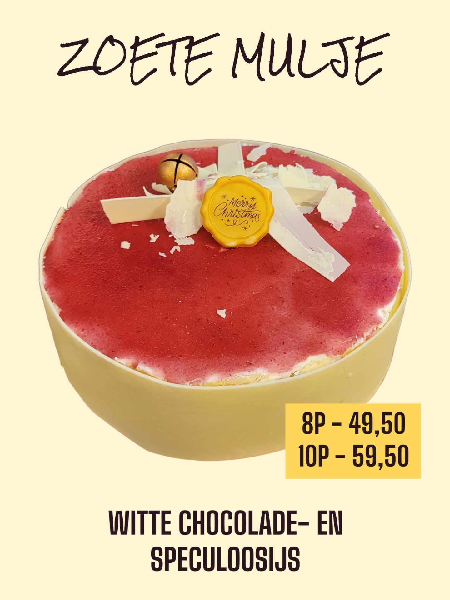 Deze ijstaart is een feest voor de zintuigen. Binnenin vind je een zalig romige laag speculoosijs met een frisse woudvruchtengel. De buitenkant bestaat uit fluweelzacht witte chocolade-ijs, afgewerkt met een glanzende woudvruchtenspiegel en een elegante witte chocoladeband. Alles rust op een krokante speculoosbodem die het geheel perfect afrondt.